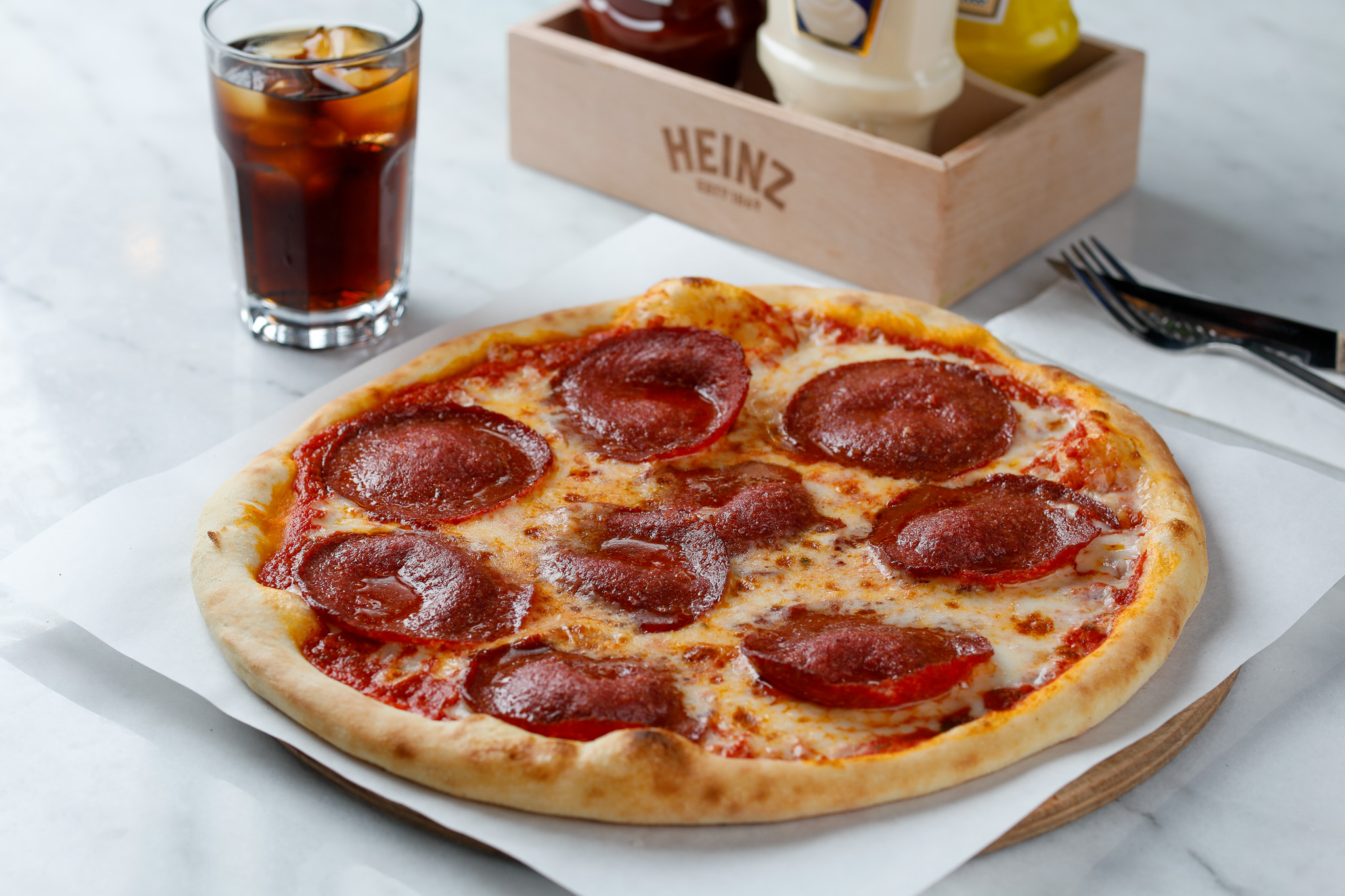 Pizza hamuru üzerine; pizza sosu, Mozzarella ve özel Osmanlı sucuk